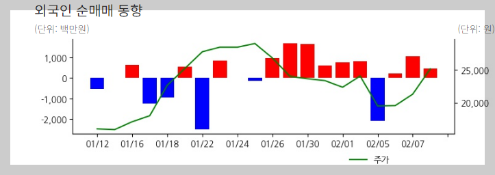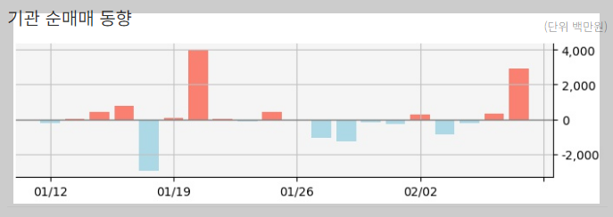 - 08일 순매매 동향 : 기관 2,900백만원 순매수, 외국인 461백만원 순매수, 개인 2,842백만원 순매도