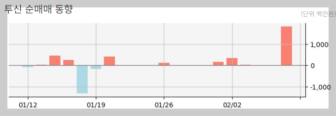 - 기관 상세 동향 : 투신 1,818백만원 순매수, 연기금 1,353백만원 순매수, 사모펀드 16백만원 순매도