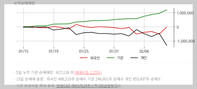 - 기관 순매매 : 246,601 주 (상장주식수대비 0.89%)