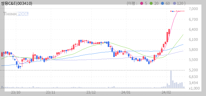 '쌍용C&E' 52주 신고가 경신, 외국인 12일 연속 순매수(204.3만주)