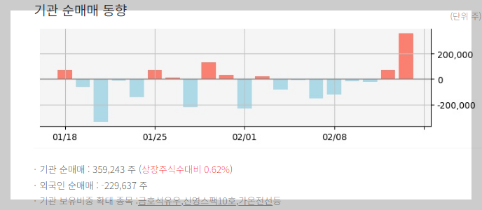 - 외국인은 156억원 순매도, 기관은 594억원 순매수, 개인은 564억원 순매도였습니다.