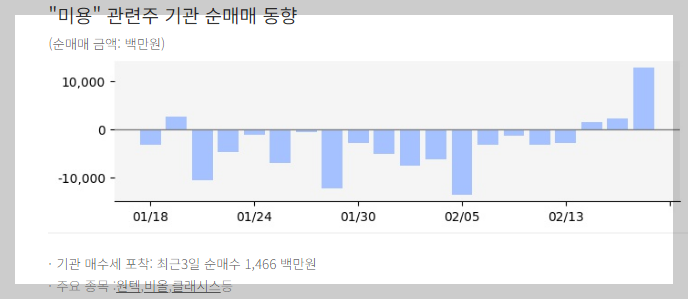미용관련 종목에 기관 매수세 포착 되었습니다.