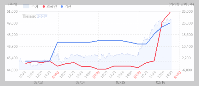 - 16일 14:30 매매 동향 : 외국인 39,405주 순매수, 기관 15,000주 순매수