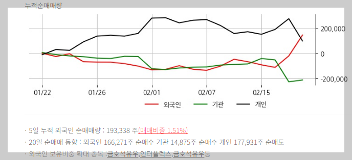 20일 순매매 동향 : 외국인 5,874백만원 순매수, 기관 534백만원 순매수, 개인 6,257백만원 순매도