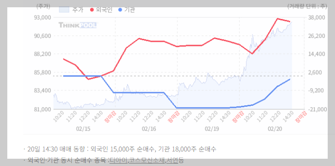 20일 장중 외국인, 기관 동시에 순매수 했습니다.