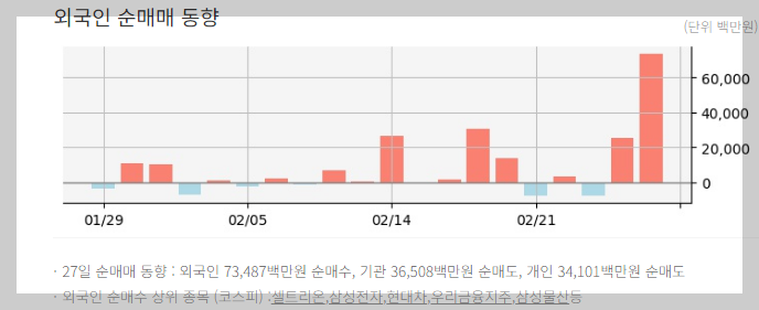 UAM 관련 종목 27일 외국인 매수세 포착되었습니다.