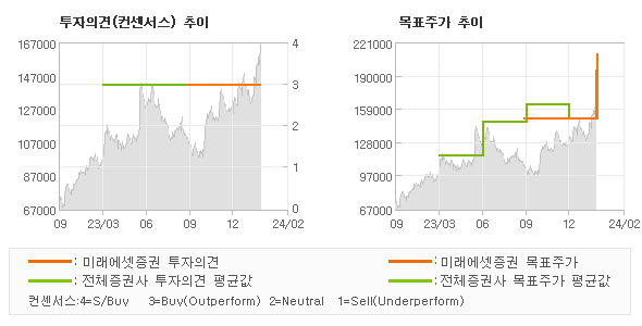 오늘 미래에셋증권에서 발표된 'BUY'의견 및 목표주가 210,000원은 전체의견에 수렴하면서 시장의 평균적인 기대감이 비교적 객관적으로 표현된 것으로 풀이되며 목표가평균 대비 9.1% 초과하고 있는 것으로 집계되었다. 참고로 최근에 목표주가를 가장 공격적으로 제시한 다올투자증권은 투자의견 'BUY'에 목표주가 220,000원을 제일 보수적인 의견을 제시한 DB금융투자증권은 투자의견 'BUY'에 목표주가 160,000원을 제시한 바 있다.