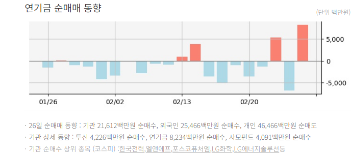 외국인 기관 연기금 등 수급의 특이사항 발생과 순매수, 매도의 현황을 파악하세요.