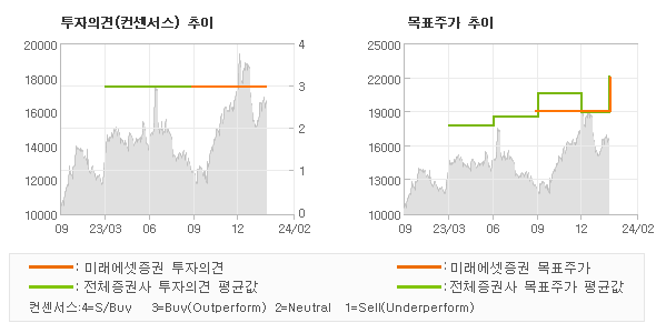 오늘 미래에셋증권에서 발표된 'BUY'의견 및 목표주가 22,000원은 전체 컨센서스 대비해서 대체적으로 평균치에 해당하는 수준으로, 이번 의견은 동종목에 대한 전체적인 흐름에서 크게 벗어나지 않은 것으로 파악되며 목표가평균과 대비해서 미미한 차이가 나는 것으로 집계되었다.