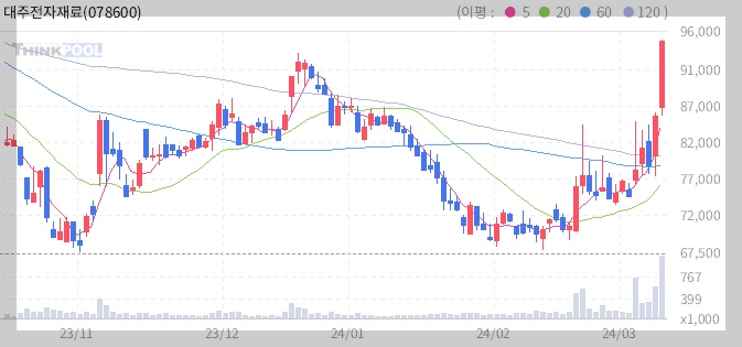 오늘 주식 종목 추천으로 대주전자재료를 추천 합니다.