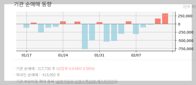 - 기관 순매매 : 317,730 주 (상장주식수대비 0.56%)