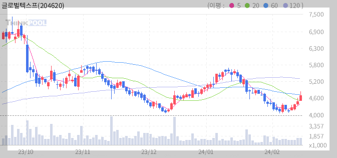 글로벌텍스프리의 외국인 기관 수급이 좋습니다.