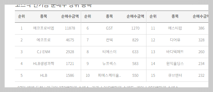 7일 연기금 순매수에 상위 신규 등장 했습니다.